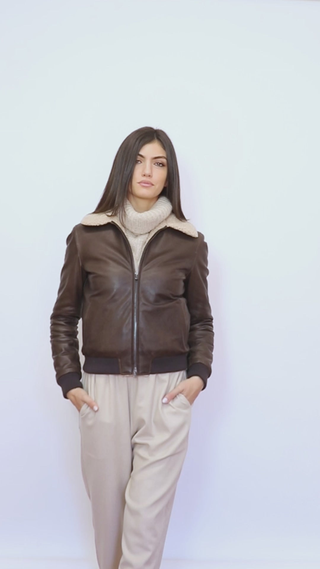Echtlederjacke AZ0089 LIMITED Öko-Schaffellfarbe. Braun