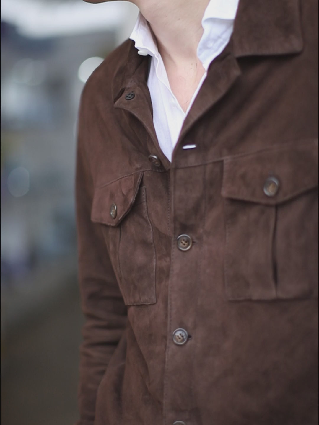 Camisa en Piel Verdadera AZ0068 Gamuza col. moro