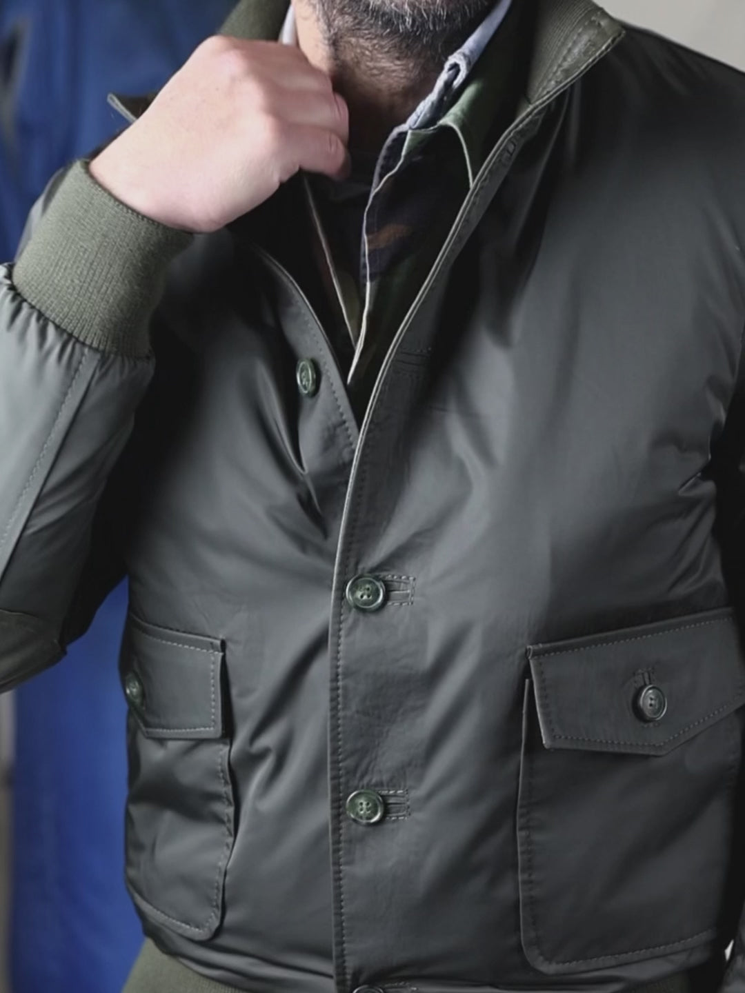 Blouson bomber en cuir véritable AZ0098 LIMITED Naturel col. Gris