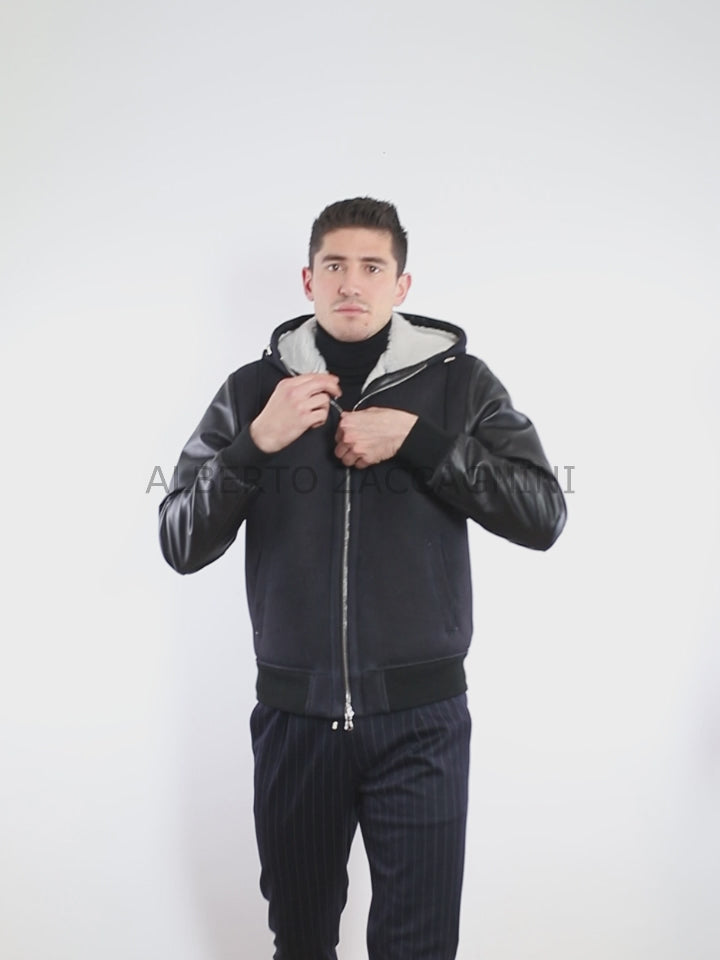 Bomber Cappuccio Vera Pelle AZ0089 LIMITED Shearling / Naturale col. Nero