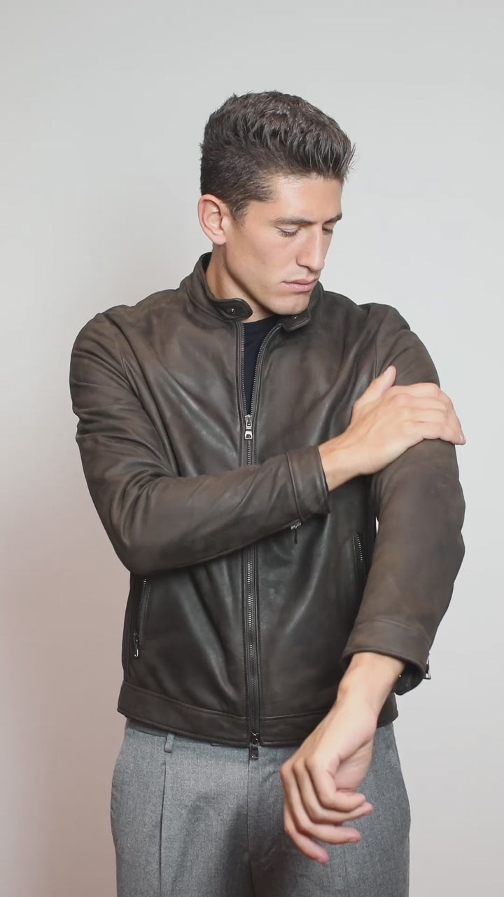 Biker Vera Pelle AZ0097 Scamosciato VINTAGE col. Brown
