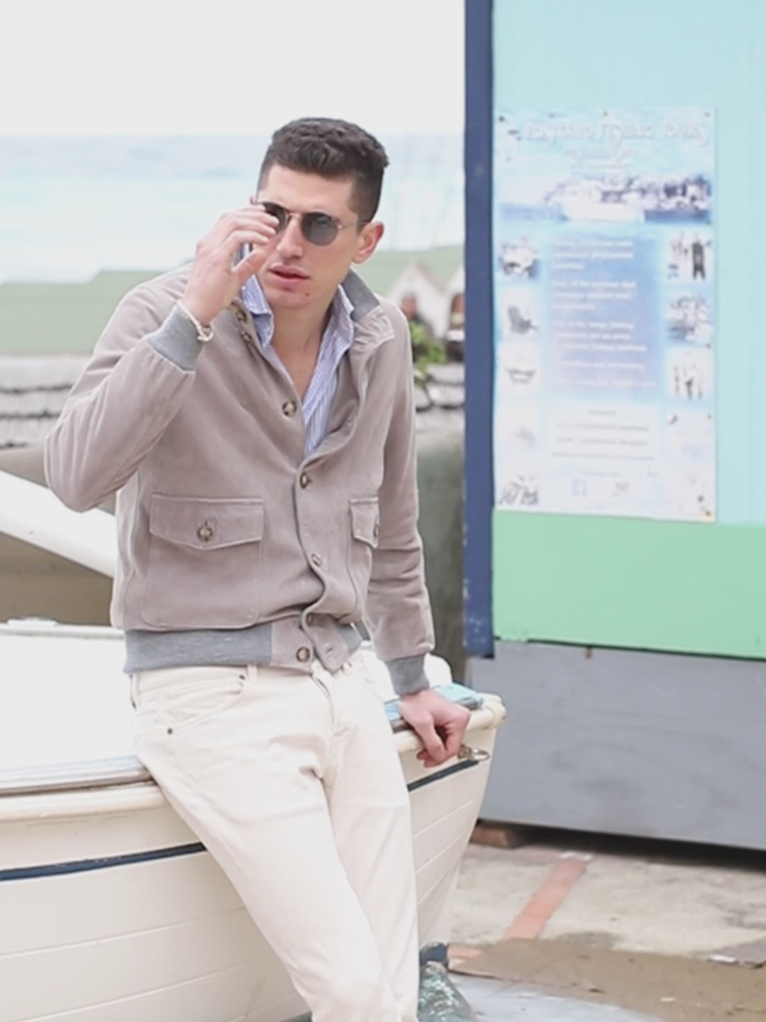 Bomber Vera Pelle AZ0098 Suede col. Grigio Chiaro